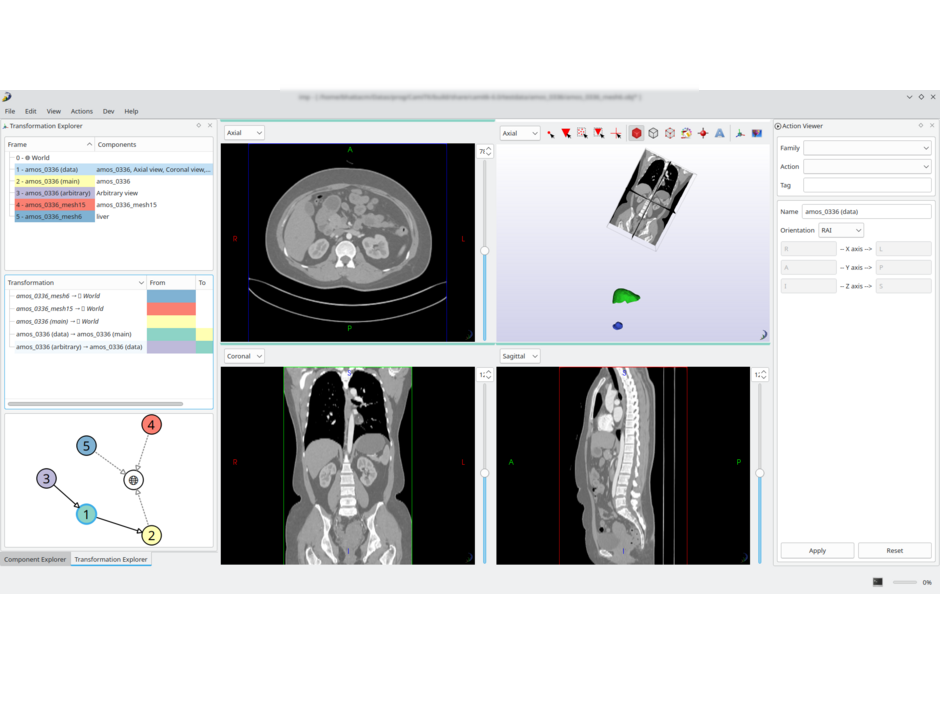 CamiTK provides simple ways to integrate and validate new algorithms (in C++ and Python) with already existing tools. It follows a Component-Based Software Engineering design where data types, algorithms, sensors, viewers and user interaction are made available by extensions (plugins).